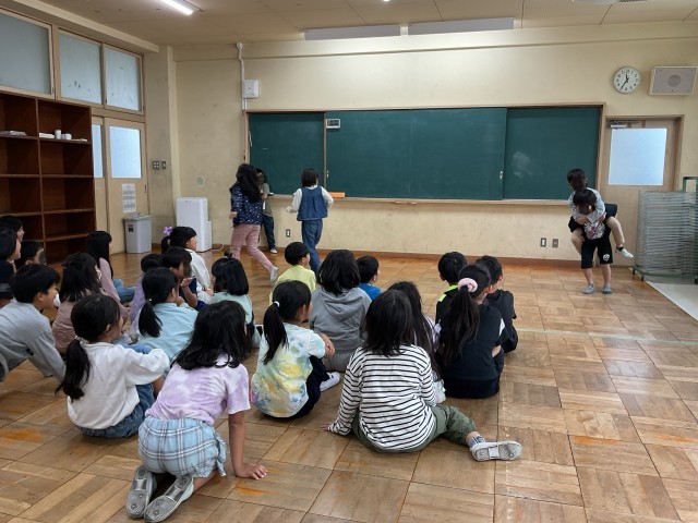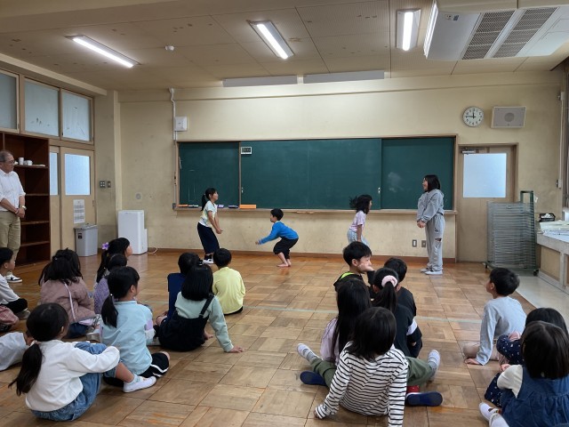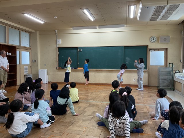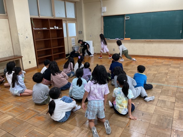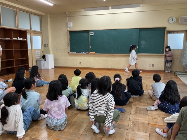 ロールプレイワーキングショップ2回目その1 公開日 2025/10/27 更新日 2025/10/27 2年生 10月24日。2年生は「何をしていてどうなったでしょう」というロールプレイを取り入れた授業を行いました。前回9月12日が「何をしているのでしょう」だったのが今回は少しお題も難しくなっています。2年生の児童はチームの仲間と考えて見事に演じ、観客役の児童もだいたいお題を当てることができていました。 +7 いいね(0)