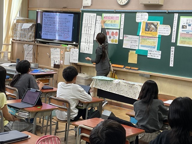 10月24日。5年生国語「和の文化を発信しよう」には市教委の先生方や他校の先生方が見にこられました。児童の様子を真剣に見ていただき児童からはたくさんの人に見られて緊張したとの声もあったとのこと。児童の皆さんご協力ありがとうございました。この単元のために5年生の学年教室には関連する図書も置いています。
