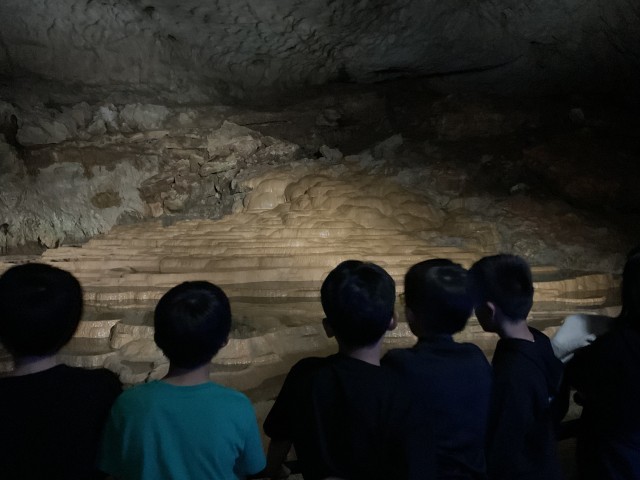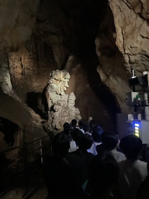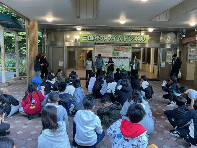 11月6日。またバスに乗り黒谷口で鍾乳洞を見学。続けて秋吉台サファリパークへ。バスの中から動物を見たり、ふれあいゾーンで動物と触れ合ったりしました。敷地内のレストランで昼食をいただき、お土産を購入しました。楽しかった修学旅行も後少し。新山口駅で解散式をして、新幹線に乗り新大阪駅へ。混雑する駅の中を移動してバスに乗り、校区に着いたときはもう暗くなっていました。