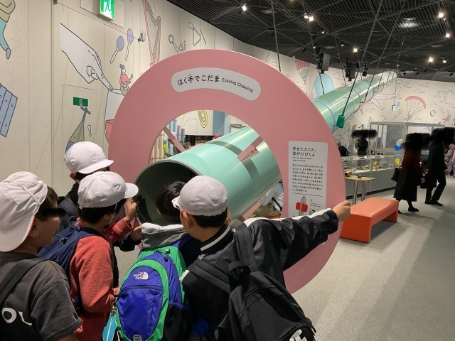館内は、各階ごとに「科学の探究」「物質の探究」「みんなでたのしむサイエンス」のテーマに分かれており、各々のテーマに沿った展示や体験コーナーがありました。同じ体験コーナーで何度も実験を試みる子どももいれば、一つの展示物に時間をかけてじっくり見学する子どももいました。あまり科学のことを知らない子どもたちも、「みんなでたのしむサイエンス」のコーナーで起こる不思議な現象に声を上げながら驚いた様子が多々見られました。それぞれの感性を大切にしながら科学と触れる貴重な機会となっていた様子でした。