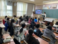 3年生の運動場での体育では、ハードル走の基礎となる障害走を行いました。1.2.3のリズムで踏み切って跳ぶために、フラフープやコーンを活用して場を設定し、身長ごとに分かれて取り組みました。