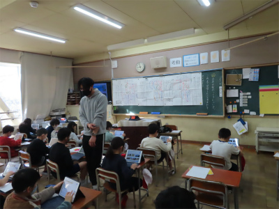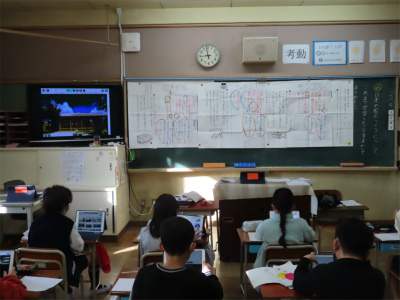 3年生の国語では、説明文の授業に取り組んでいます。この日は、これまでの時間に読み取ってきた3つの国の表を並べ、違いや似ているところなどを比べていました。