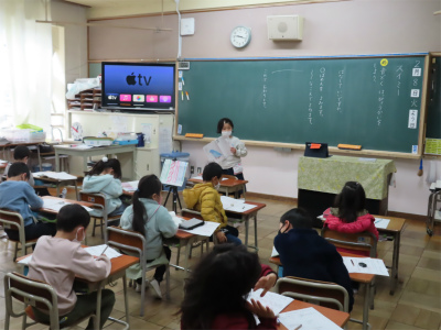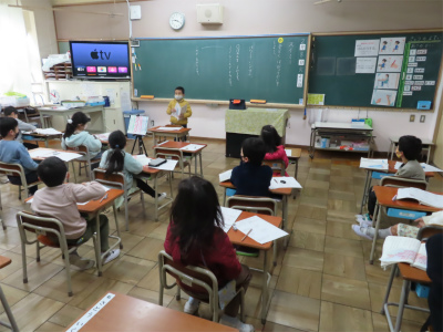 1年生は、教室で「スイミー」の音読発表会をしていました。一人ずつしっかりとどこをどんな風に読むかを伝えてから読めているのには、感心しました。