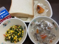 今日の給食は、うずらたまご入りの八宝菜です。その具沢山の八宝菜の中に、別添えの袋で出た「おこげ」を入れていただきます。寒い雨の日に体の温まるメニューはホッとします。久しぶりに出たアップルパンも甘くて美...