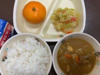 大人気チキンカレーの登場です。お昼間際になると、調理場からはおいしそうなカレーのにおいが・・。すでに子どもたちのたくさんの笑顔が見られました。食べやすいチンゲンサイのいためものと一緒においしくいただき...