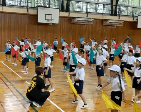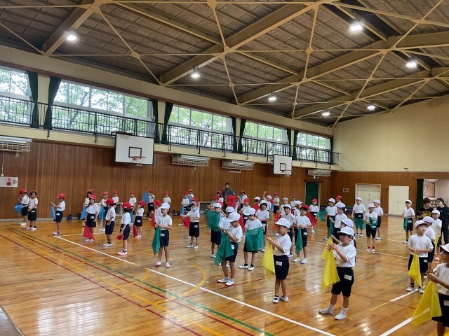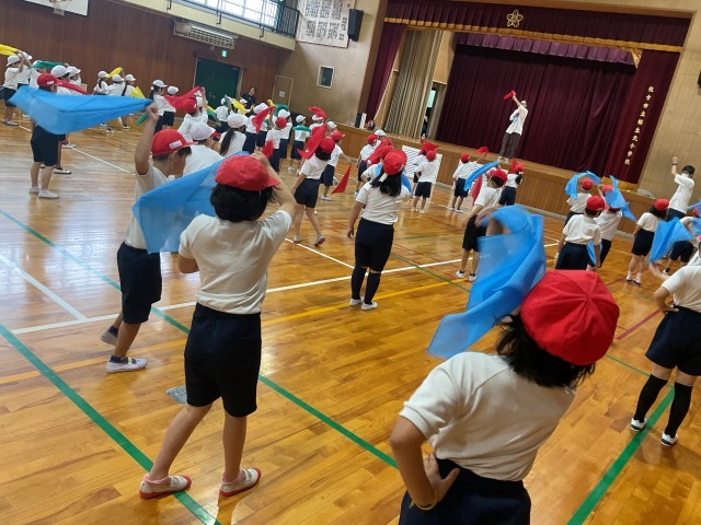 今日の練習よりカラフルなアイテムが登場しています。去年運動会を経験している2年生はダンスの覚えも早いですね。