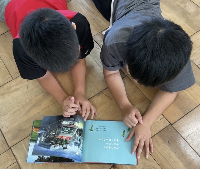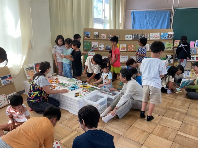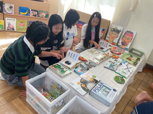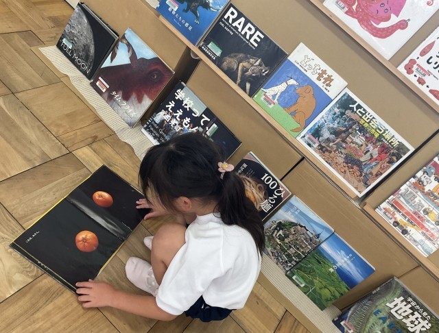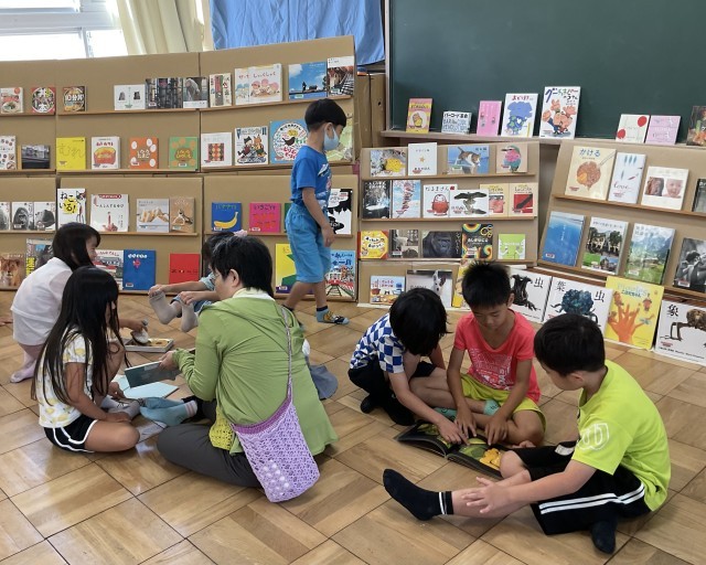 読み聞かせ団体「キューピット」さんのサポートのもと「えほんひろば」を二日間実施しています。各クラスでたくさんの本を目の前にして、自由にたくさんの本とふれあっています。一人で読んだり、めくったり、友だちとワイワイ言いながら、本の世界を楽しんでいるようです。休み時間もたくさんの子どもたちが楽しい時間を過ごすことができました☺️