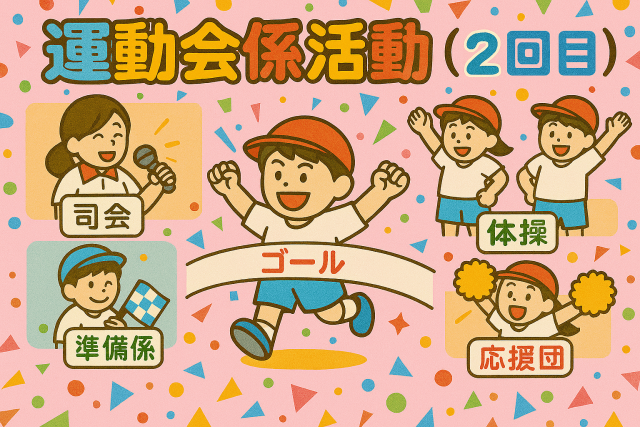 運動会係活動(2回目)を実施しました。前回よりも流れを確認している子どもたちは、テキパキと自分自身で考え行動しています。放送係りのやる気をアップさせてくれる呼びかけに、笑顔で取り組む姿がとても印象的でした!