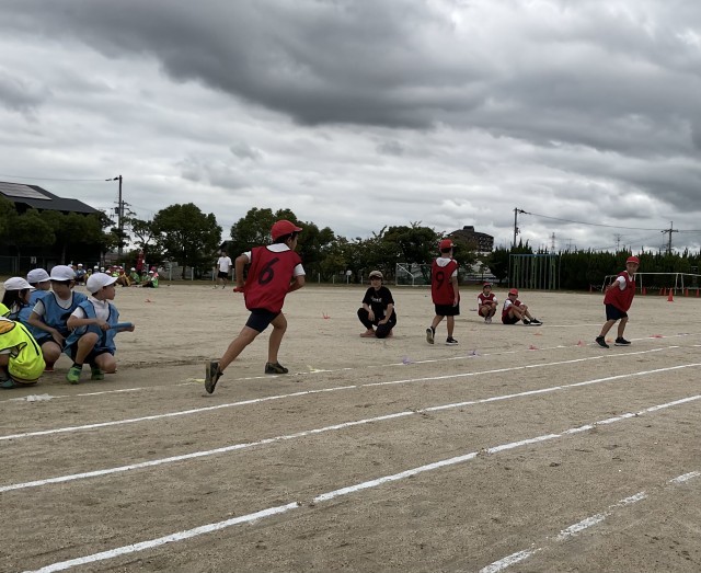 リレーの練習では、入場退場の並び方やセパレートコースの確認など、走る練習の前におさえておきたいポイントを丁寧に確認していました。とても大事なことですね。