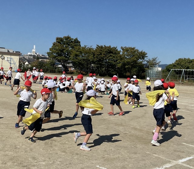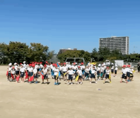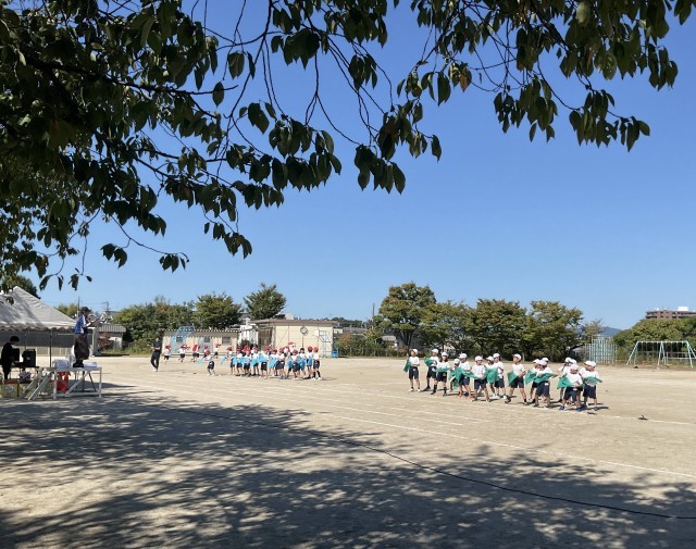 1年生2年生での合同練習は今日を合わせて2回となりました。今日は青空の元、過ごしやすい中での練習となりました。音楽にあわせて動き方もダイナミックになってきましたよ