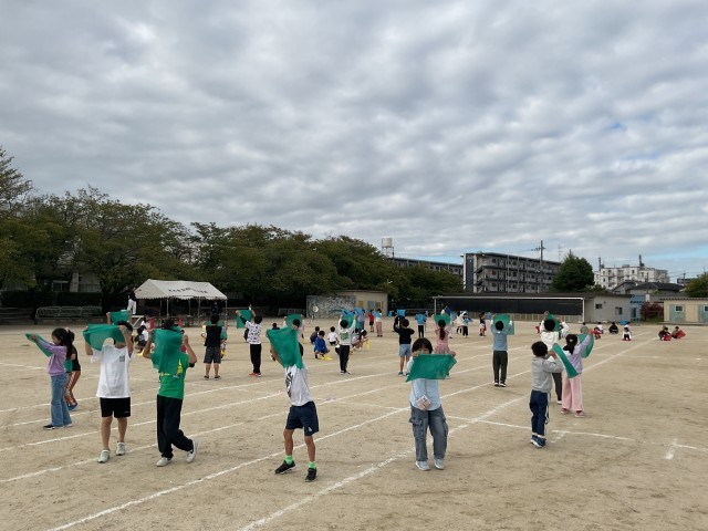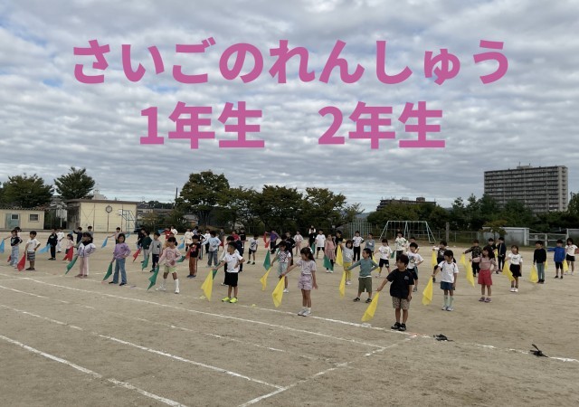 1年生にとっては初めての運動会の練習でした。おどりや移動の場所を覚えることも大変だったと思います。しかしながら、2年生が優しく声をかけてくれたり、手を引っ張ってくれたりとみんなで作りあげながら明日をむかえます。