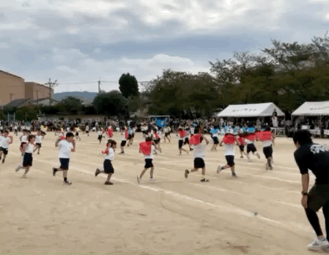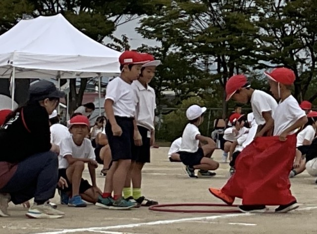 1年生2年生の演技では、カラフルなフラッグの動きと隊形移動に驚かされました。1年生のデカパン競争ではペアとの呼吸もピッタリでしたね。