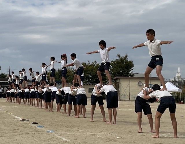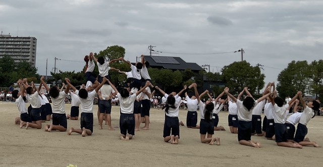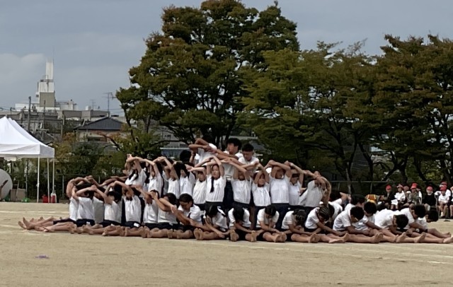 5年生6年生の演技は自分たちで作り上げてきた努力の成果が発揮できたようです。楽しみながら、そして助け合いながら、強いきずなを観ることができました。最後の運動会、最高の思い出になったのではないでしょうか☺️