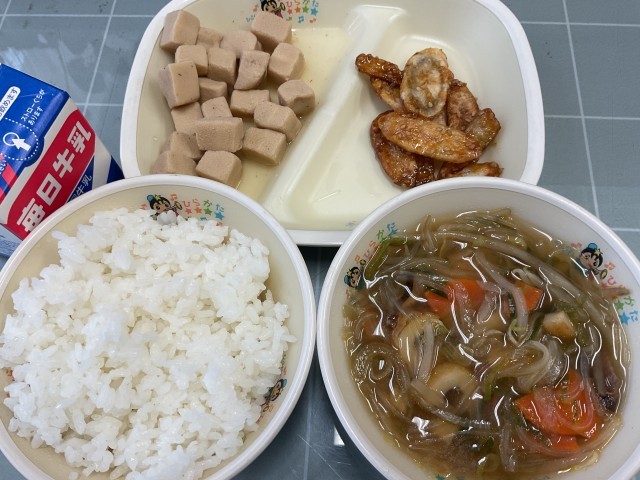 11月4日(火)おいしい給食(ごぼう) 公開日 2025/11/04 更新日 2025/11/04 おいしい給食 「あげごぼうのあまだれ」はこってりしていて、ごはんがとてもすすみますね。ツルツルしたタイピーエンもとても大人気でした。【献立】タイピーエン・あげごぼうのごまだれ・こうやどうふのふくめに・牛乳・ごはん いいね(0)