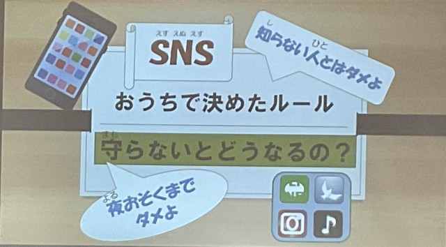 子どもたちを取りまく環境の中で、ルールを守ることでいかに「安心」して日々の生活を送ることができるか教えていただきました。特にSNSの使い方では自分だけでなく家族一緒に関わることが大切です。引き続きコミュニケーションツールとしてのルールの確認や情報リテラシーの共通理解を図っていきます。