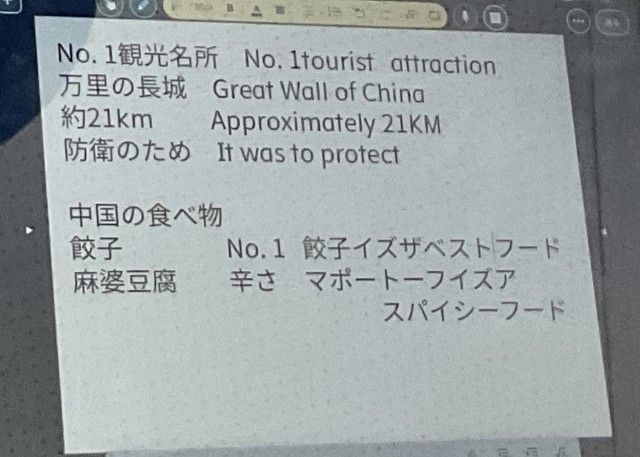 世界の国々の魅力を伝えるために、一人ひとりが旅行会社になって紹介することができるようにまとめています。各国の有名な食べ物や建物などたくさん見つけられますね。