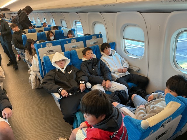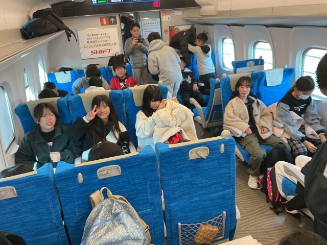 新幹線に乗車しました。広島到着は10時40分ごろです。それぞれのグループでゆっくりとした時間を過ごしています🚅