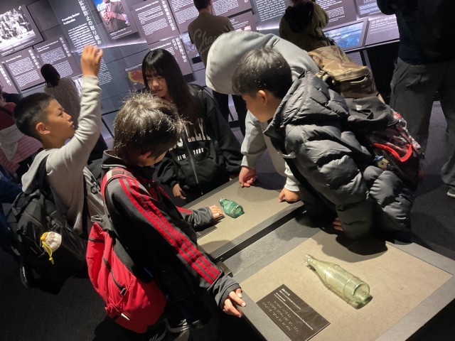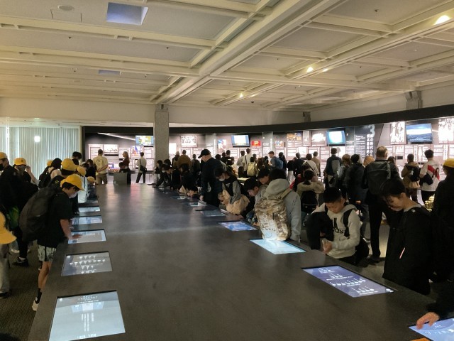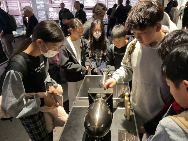 平和資料館は修学旅行生や観光客でとてもたくさんの人がいました。事前授業で学んできたことと実際に自分の目で見て感じることで、平和に対してこれから何ができるかをあらためて学ぶとても貴重な時間となりました。