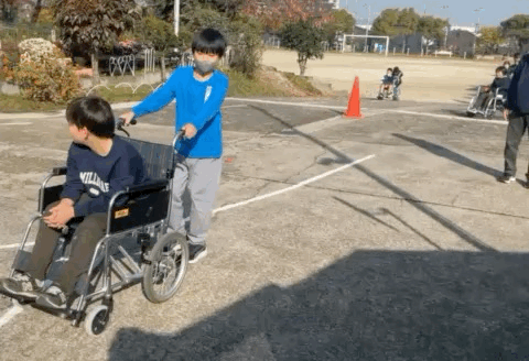 地域福祉委員の方々の協力のもと、車いす体験を実施しました。準備されたコースを交代で体験します。車いすに乗る側は、視点の変化やちょっとした段差、下り坂などを進むなど、普段の生活で感じることのない体験となりました。そして、車いすをサポートする側は、どのような事に気を付けながらサポートするのか?たくさんの気付きや学びがあった時間となりました。地域福祉委員の皆様、ご協力いただきありがとうございました。