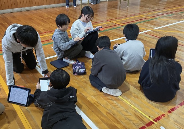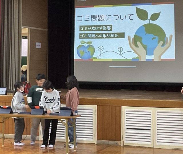 いよいよ明日はオープンスクールでの発表です。これまで各班が協力して取り組んできた内容になります。マイクを使い最終確認です。5年生の取り組みを教育委員会の指導主事の方も参観に来られました。とても楽しみですね☺️