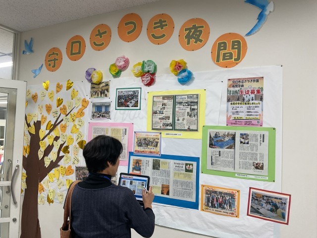 後半は「夜間中学校」の見学でした。「夜間中学校」とは、義務教育を受ける年齢を超えている人に、小学校・中学校の教育を保障するためにできた学校です。事情があって学校で勉強できなかった人や、そのために文字の読み書きに困っている人が、夜に勉強する学校です。どんな国籍の人でも入学できます。今年度は15歳から91歳までの156人の生徒が在籍しています。5時を過ぎるとたくさんの生徒さんが登校してきて、各クラスで授業が行われていました。生徒さんの様子からは学校の本質である「知りたい・学びたい」が伝わってきます。学校に来る意味とは?学ぶとは?つながりとは?社会とは?たくさんの投げかけの中で、今の学校が求めれいる事・子どもたちに伝えなければいけない事など、たくさんの気付きと学びがあった時間でした。これからも「守口市さつき学園」との連携を大切にしていきます。