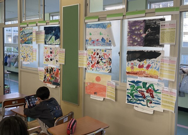 完成した自分の作品の感想や振り返りの時間です。友達の作品から感じたことをまとめてロイロノートで送り、共有を図っています。