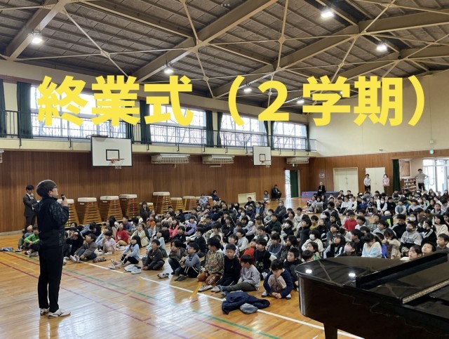 終業式では校長先生から、まず2学期の各種コンテストで優秀な成績をおさめた子どもたちへの表彰式を行いました。次に2学期の振り返りと「このあと、どうなる?」との呼びかけに、学校外での過ごし方についてみんなで考える時間をとりました。最後には、あらためて新しくなったタブレットの使い方についての説明があり、より充実した冬休みの過ごし方につながる内容となりました。冬休みは楽しい場面が増えると思いますが、次にどのように一人ひとりが行動するかは、終業式での話を思い出して「おもいとどまる」ことを実践してみてください🖐️