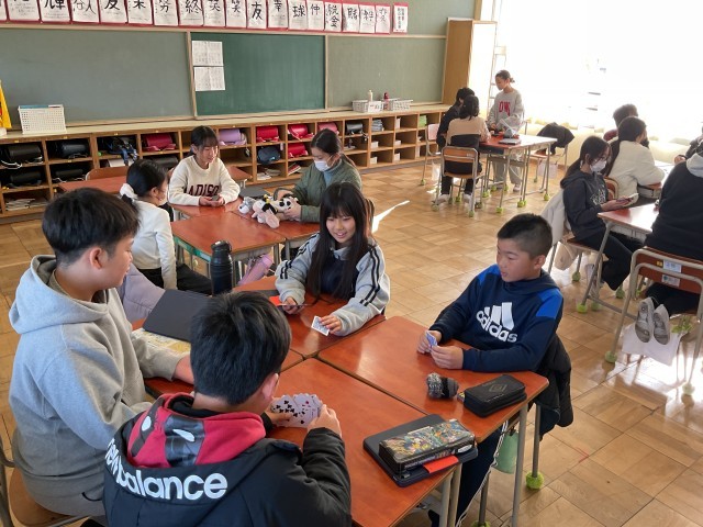 本日より三学期が始まりました。校内にはたくさんの笑顔と笑い声が戻ってきました。始業式後の教室では、冬休みの思い出トークやカードゲームなどたくさんの交流の時間となったようです。「もうちょっと冬休が続いてほしかったな」「早く学校に来たかってん」「友達と会えてうれしい」などなど、明日からも元気に登校してきてくださいね。