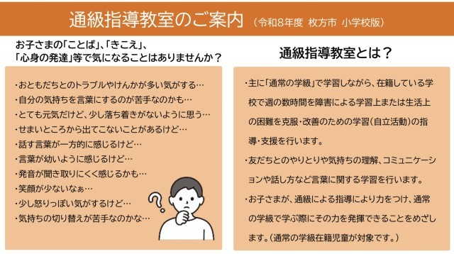 本校におきましても、令和8年度より通級指導教室が設置予定となります。