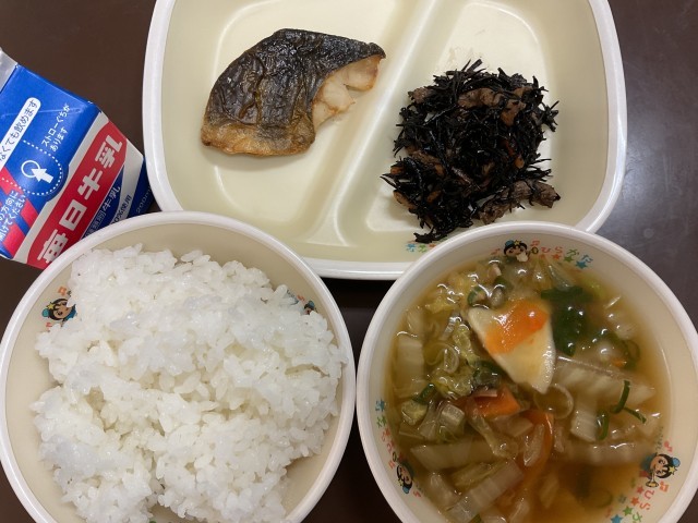 【献立】せんべいじる・ほっけ・ひじきのいために・ごはん・牛乳