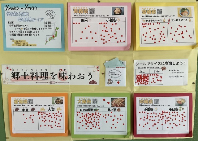 今日から給食週間が始まります。今年度の給食週間は、「都道府県ごとの郷土料理を味わおう」です。1日目は、青森県の郷土料理「せんべいじる」の登場でした。肉や野菜などを入れたしるに「南部せんべい」をわり入れて煮込んだ郷土料理です。もちもちしたせんべいとほっけのおいしさがご飯をすすめてくれます。