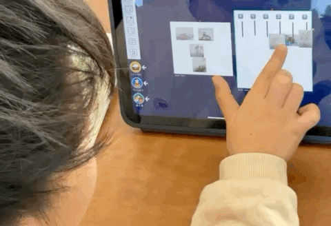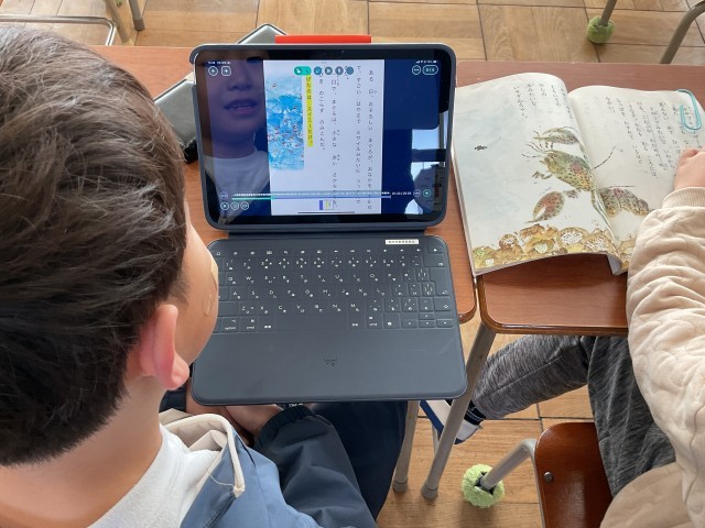 フラワー学級では、1年生が国語の音読活動を、3年生がブロックを使い図形になれる学習を進めていました。物語の場面わけでは、タブレットを使い視覚的に全体をとらえる活動でした。限られた時間の中でより積極的に取り組めるような環境設定がポイントとなっています。