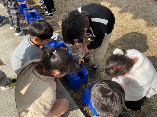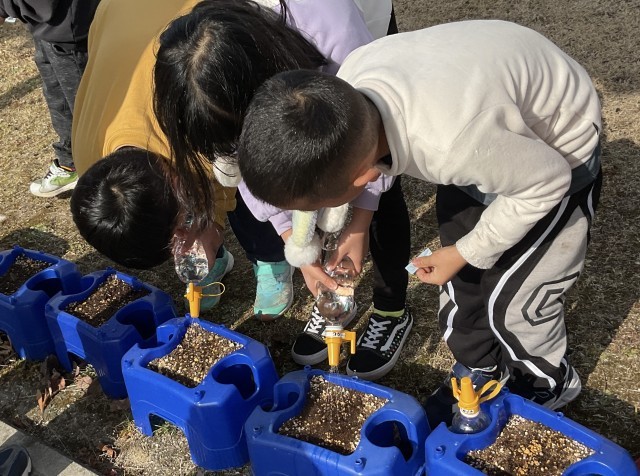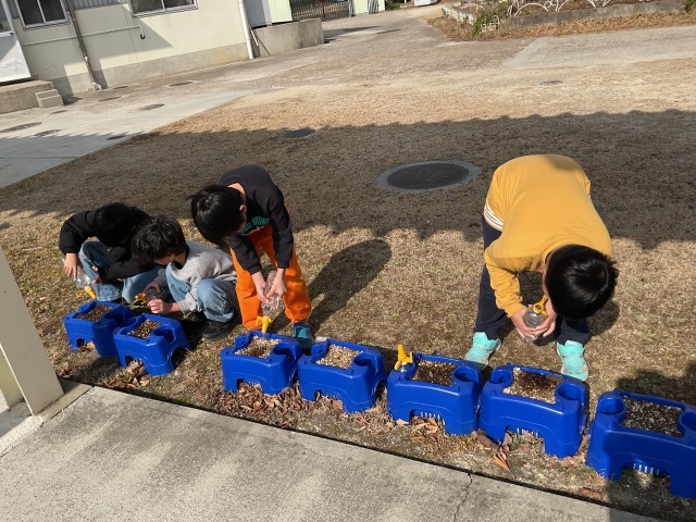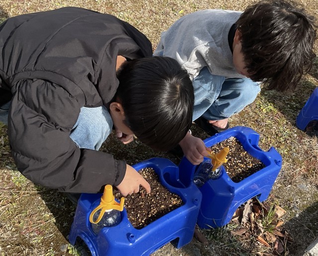 チューリップの球根を植えて、元気に育つようにとの想いを込めて水やりをおこなっています。毎日の登校の際の観察が日課となっているようです🌷