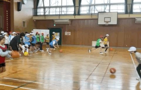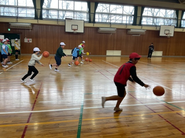 合同体育でバスケットボールに取り組んでいます。基本のドリブル練習からです。ボールは友だちです🏀