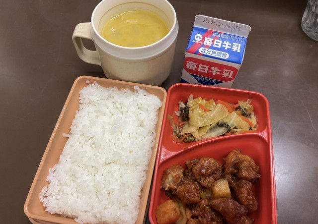 今日の給食は中学校給食の試食でした。いつもとは違う、お弁当方式ですが、中身は温かくおいしくいただきました。小学校給食よりも、たくさんの献立メニューがあるようです🍱
