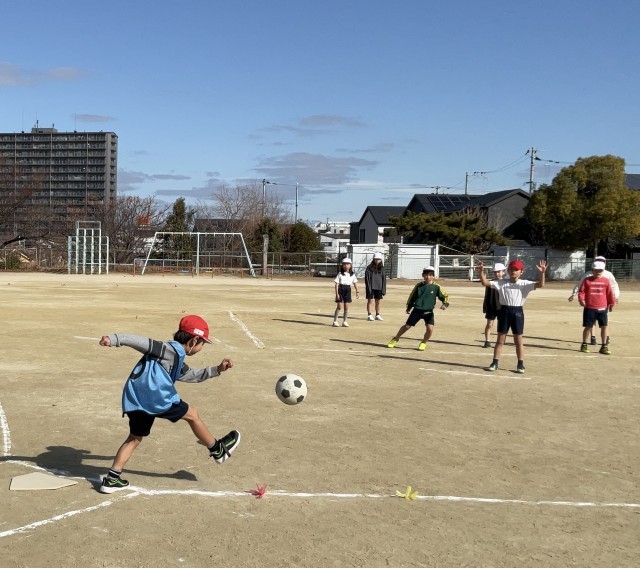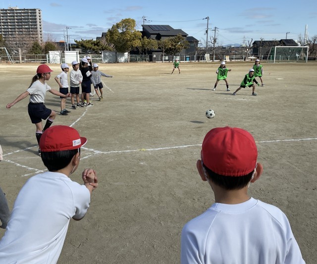 ボール運動として、キックベースボールに取り組んでいました。誰もがボールを蹴ることができるようにルールを工夫して進めています。元気いっぱいの3年生です⚽️