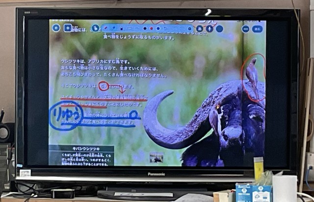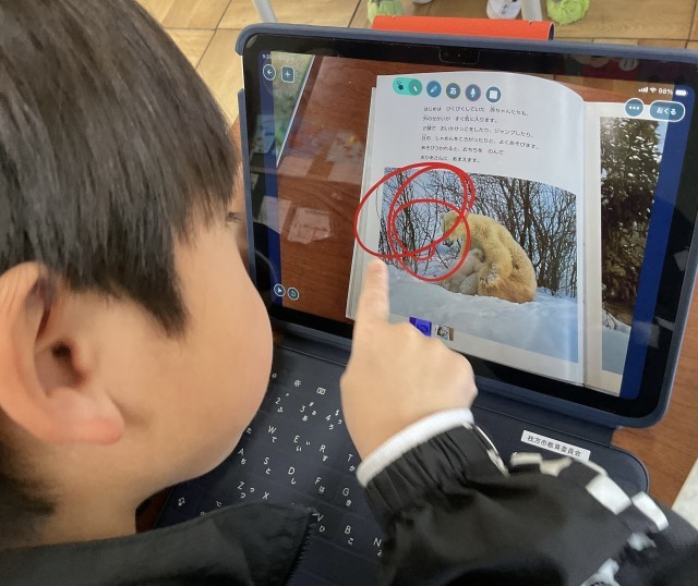 「どうぶつを選んで、選んだ動物のちえを見つけよう」から図書室で本を借りてきて、調べ活動を進めています。書いてある文章から「ちえ」を探すところからです。どんな「ちえ」がありましたか?
