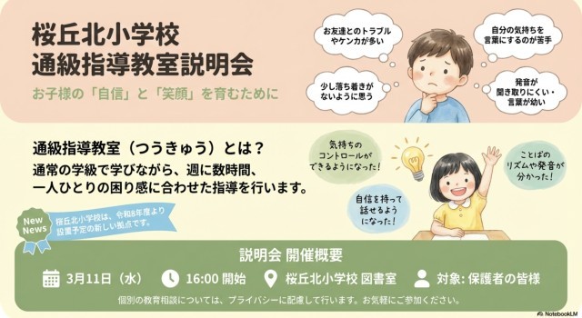 3月2日(月)「通級指導教室説明会」のご案内