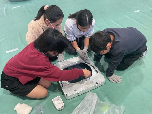 4年生の5・6時間目に地元の企業である「関西リサイクルシステムズ株式会社」に来ていただき家電のリサイクルについて環境学習を学びました。実際に、洗濯機の解体作業を見せていただき、実際に子どもたちも洗濯機の蓋のネジなどを電動ドリルで取り外す作業を体験させてもらいました。洗濯機ひとつから、プラスティックや様々な金属が再利用されることを体験して学ぶことができていました。実生活につながる貴重な体験となりました。