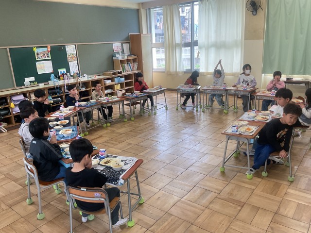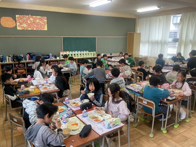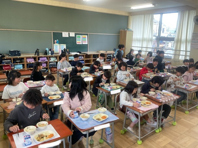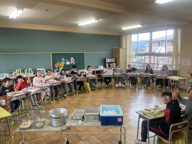 最後のおいしい給食でした。調理員さん、毎日私たちのためにおいしい給食を作っていただき大変ありがとうございました。子どもたちのたくさんの笑顔と「今日もおいしかった」の声が毎日の励みとなっていました。これからもよろしくお願いします😌最後の給食を楽しんでいましたね🍚