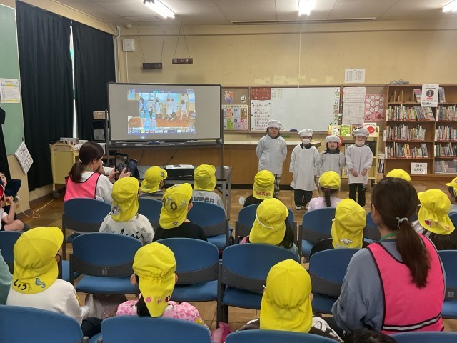 桜丘北保育園のみなさんをご招待して、学校生活の様子をプレゼンする時間となりました。給食の準備の様子や掃除の様子など、チャイムの音と共に発表してくれました。学校の様子がわかって、幼児の皆さんもとても嬉しそうな様子でした😀