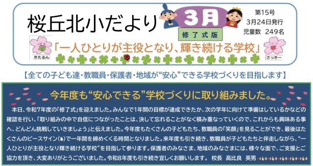 3月24日(火)学校だより3月号(修了式)