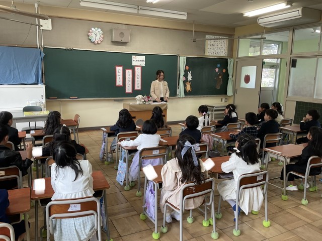 私からは学校生活を楽しく過ごすための4つの魔法の言葉(やってみよう、ありがとう、なんとかなる、ありのまま)を紹介し、先生を初め上級生、地域の方々が新1年生を支えてくれることを伝えました。