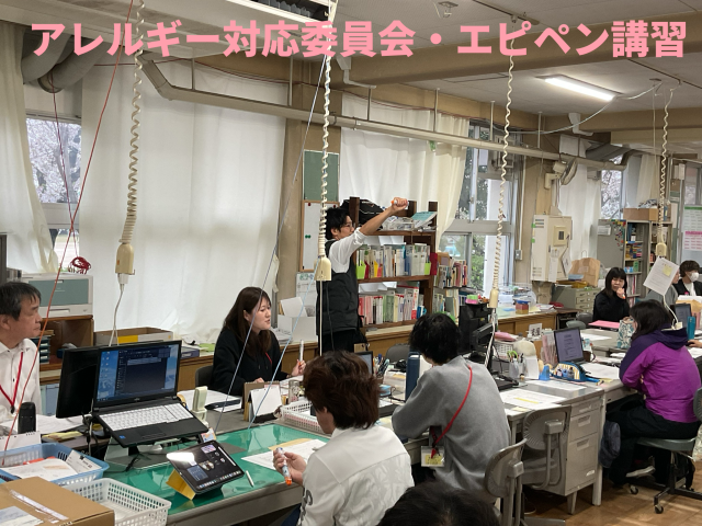 本日、本校にて「アレルギー対応委員会」と「エピペン講習」を実施しました。