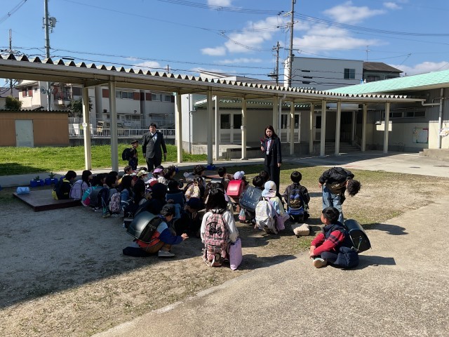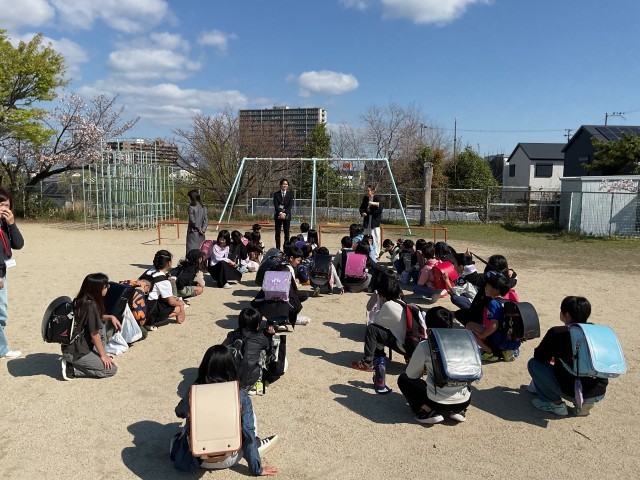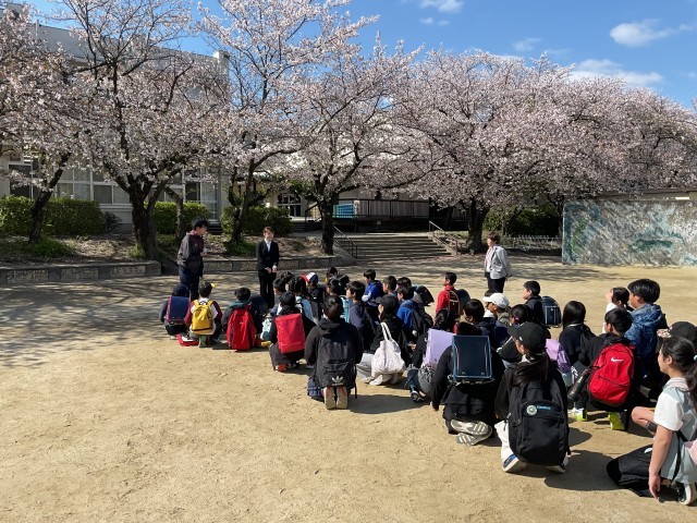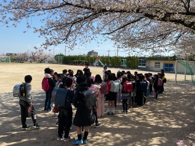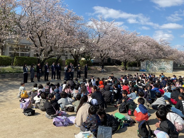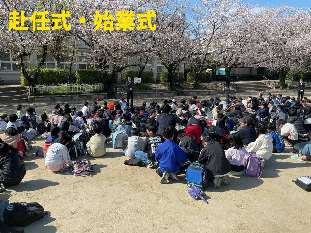 1年生以外の子どもたちは登校後、すぐに運動場に集まり、赴任式と始業式を行いました。
