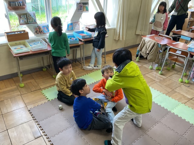 朝の用意が終わると、早速自分の遊びたい道具を使って遊んでいました。