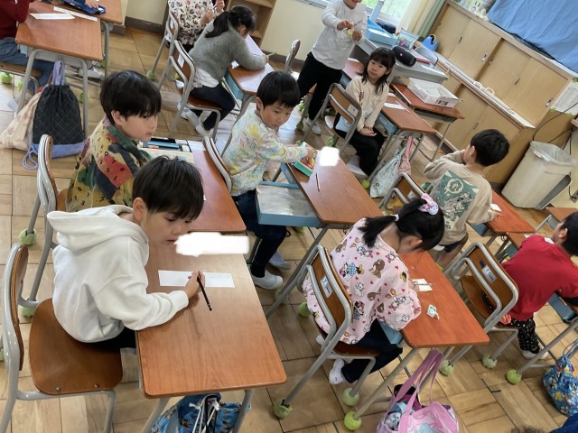 書く前に先生から鉛筆の持ち方をしっかり確認してもらいました。