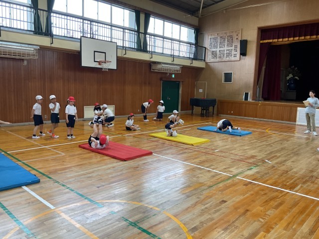 その後前転・後転の回転技をして、マット運動の感覚を思いしました。
