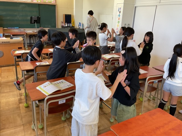 4年生の音楽では、「小さな世界」でリズム遊びです。