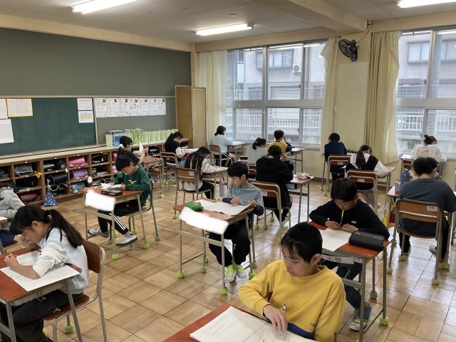 今日は毎年6年生に実施される全国学力・学習状況調査です。6年生は国語・算数・理科の問題に挑戦しました。教科書の問題と違った形式の問題もあるため、戸惑いもあったと思いますが、皆全力を尽くしました。明日もわくわく問題があります。頑張りましょう!